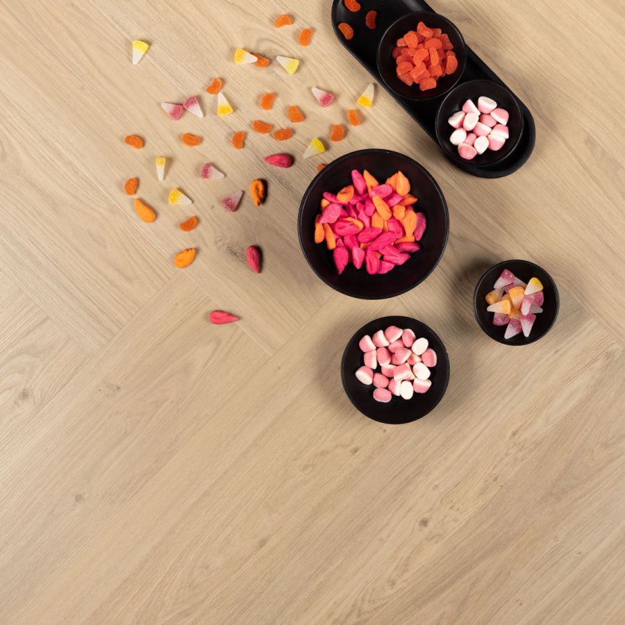 Elegante visgraatparade! De Douwes Dekker crème brûlée vloer doet denken aan de subtiel gouden tint van het beroemde Franse dessert. Deze lichte eiken vloer, met embossed in register natuurgetrouwe toplaagstructuur, straalt een trendy en smaakvol karakter uit. De vloer voegt een frisse en moderne touch toe, perfect voor diegenen die streven naar een harmonieuze woonruimte. Experimenteer met kleuraccenten en texturen; de Douwes Dekker brede visgraat crème brûlée vormt een ideaal canvas dat zich aanpast aan elke inrichtingsstijl. De vellingkanten dragen bij aan de authentieke uitstraling, waardoor de ruimte een natuurlijke en uitnodigende ambiance krijgt. Puur en verfijnd!