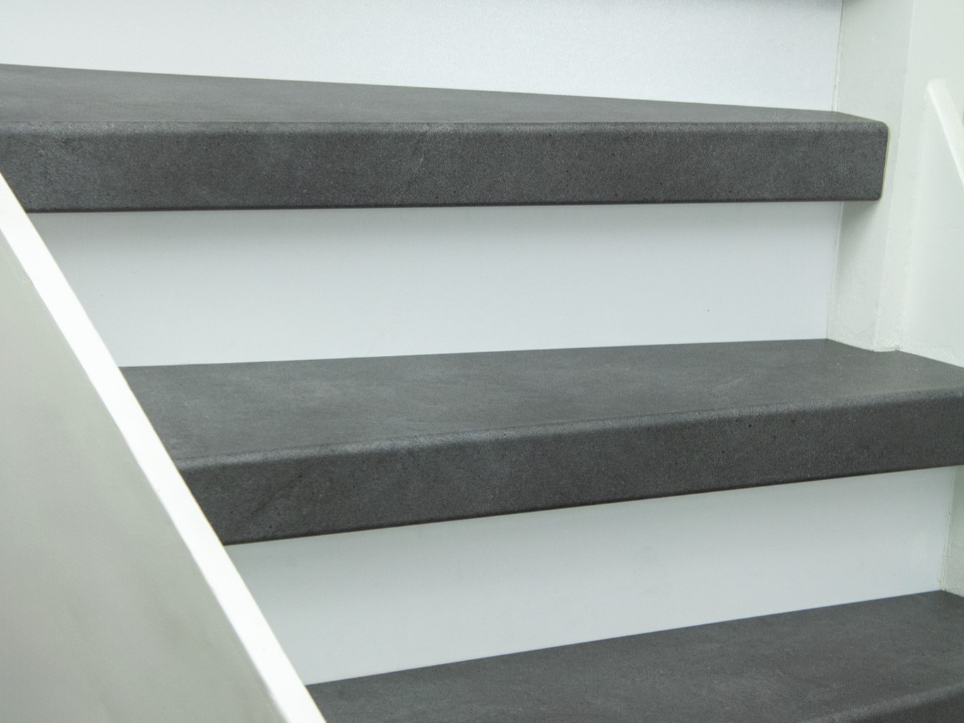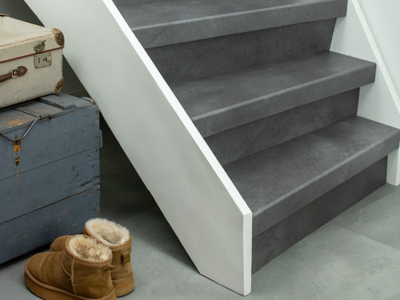 De Graniet PVC-traprenovatie heeft een prachtige betonlook. Door de betonlook zal deze PVC-traprenovatie gemakkelijk te combineren zijn in ieder interieur. De traptreden zijn 8 mm dik en de neuslijsten hebben een hoogte van 70 mm, wat zorgt voor een stijlvolle afwerking. De stootborden zijn verkrijgbaar in: wit, zwart en Graniet. De Graniet PVC-traprenovatie is gemaakt van 100% schoon materiaal en biedt een hoge kras- en slijtvastheid.