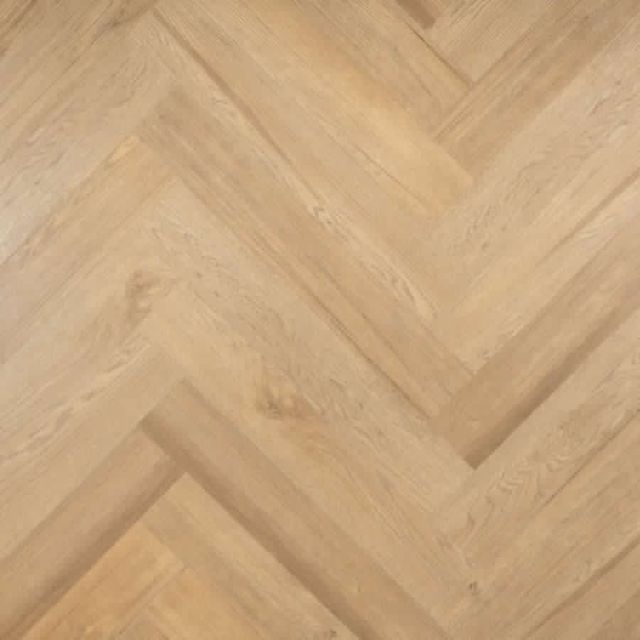 De Lux herringbone, met zijn donkerbruine tint en subtiele koele ondertoon, is een uitstekende keuze voor interieurs met een chique, eigentijdse uitstraling. Het complementeert ruimtes die spelen met contrasterende materialen.